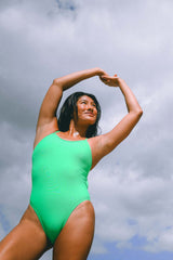 One of our bestselling styles, theBrandon is an adjustable fixed-back, full coverage one piece swimsuit with a criss-cross strap along the back. The strap is designed as one continuous band, which allows flexible distribution of tension along the shoulders and back.